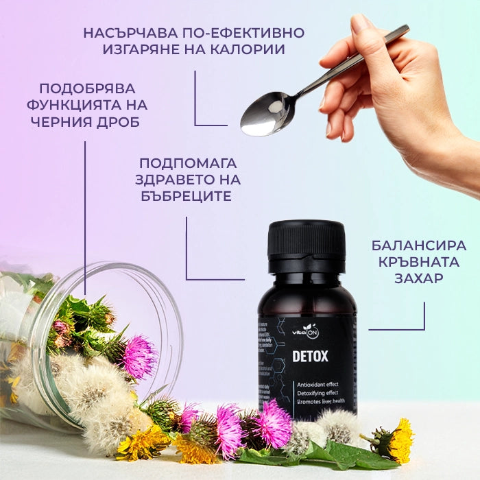 Bylinná tinktura “Detox” je potentní kombinace alkoholového extraktu ze dvou léčivých rostlin - pampelišky lékařské a ostropestřce mariánského.