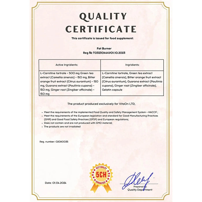 Vysoký obsah L-karnitinu v Fat Burner od VitaOn je velmi vhodným produktem pro lidi, kteří chtějí optimalizovat svou tělesnou hmotnost bez příznaků spojených s přísným dietním režimem - letargie, únava, nedostatek energie a ospalost.