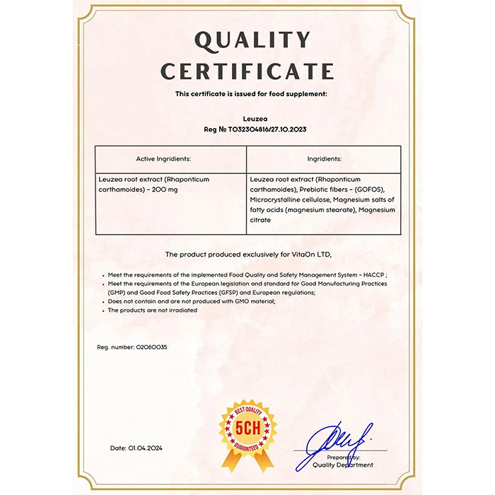 Leuzeia je skvélé řešení pro zvýšení fyzických a duševních výkonů každého, kdo si zakládá na přírodní a zdravé cestě. Její přínosy jsou uznávány po staletí v lidovém léčitelství, a to jak v Bulharsku, tak v různých oblastech asijských a zakavkazských zemí.