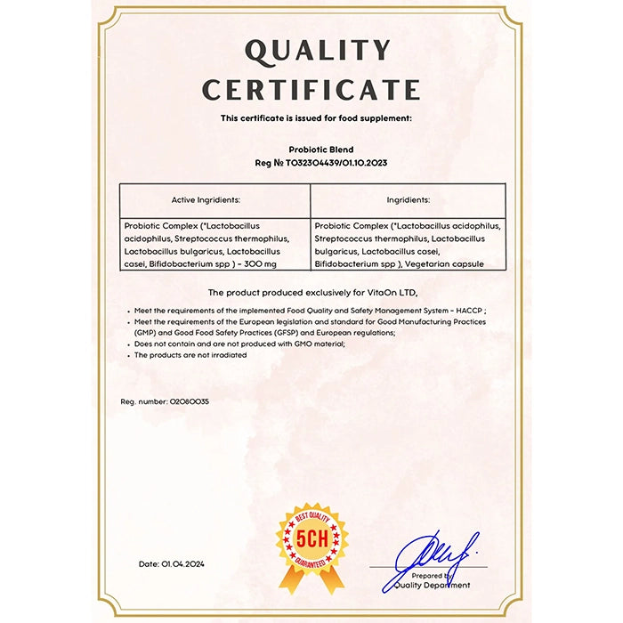 - Složení: 5×1010 probiotických kultur (Lactobacillus acidophilus, Streptococcus thermophilus, Lactobacillus bulgaricus, Lactobacillus casei, Bifidobacterium spp.).