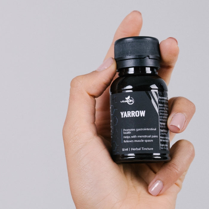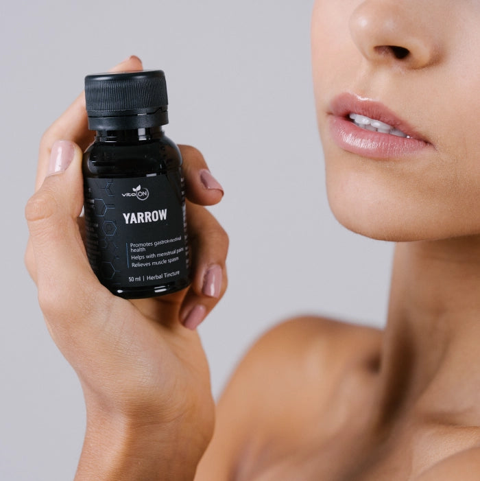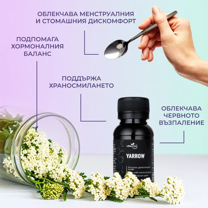Vysoce kvalitní tinktura „Řebříček“ od Vita On obsahuje všechny uvedené látky v optimálním poměru a vysokých koncentracích.
