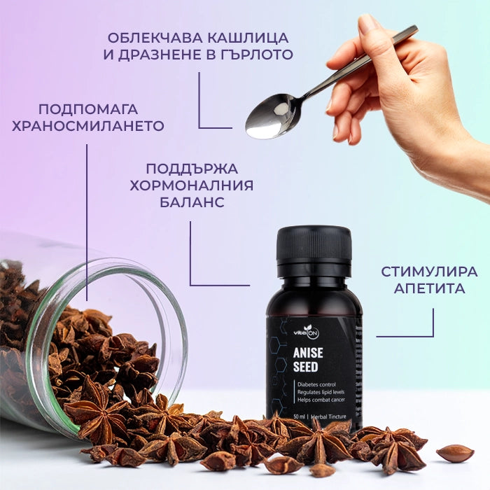 Bylinná tinktura „Semena anýzu“ od VitaOn je koncentrovaný extrakt z plodů rostliny, který obsahuje všechny potenciální výhody, které může mít léčivá rostlina.