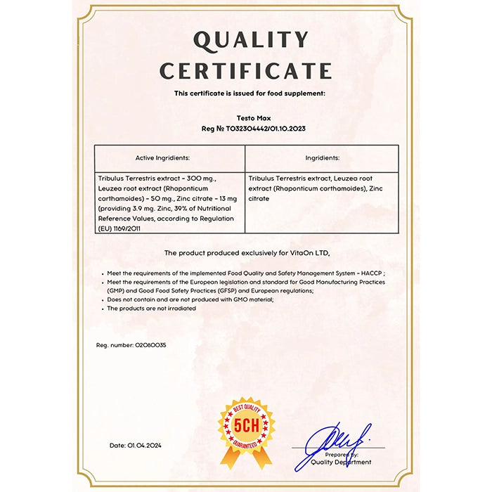 Produkty VitaOn jsou vyráběny v souladu s přísnými výrobními procesy a pod přísnou kontrolou v každé fázi, což zajišťuje vysokou kvalitu a bezpečnost.